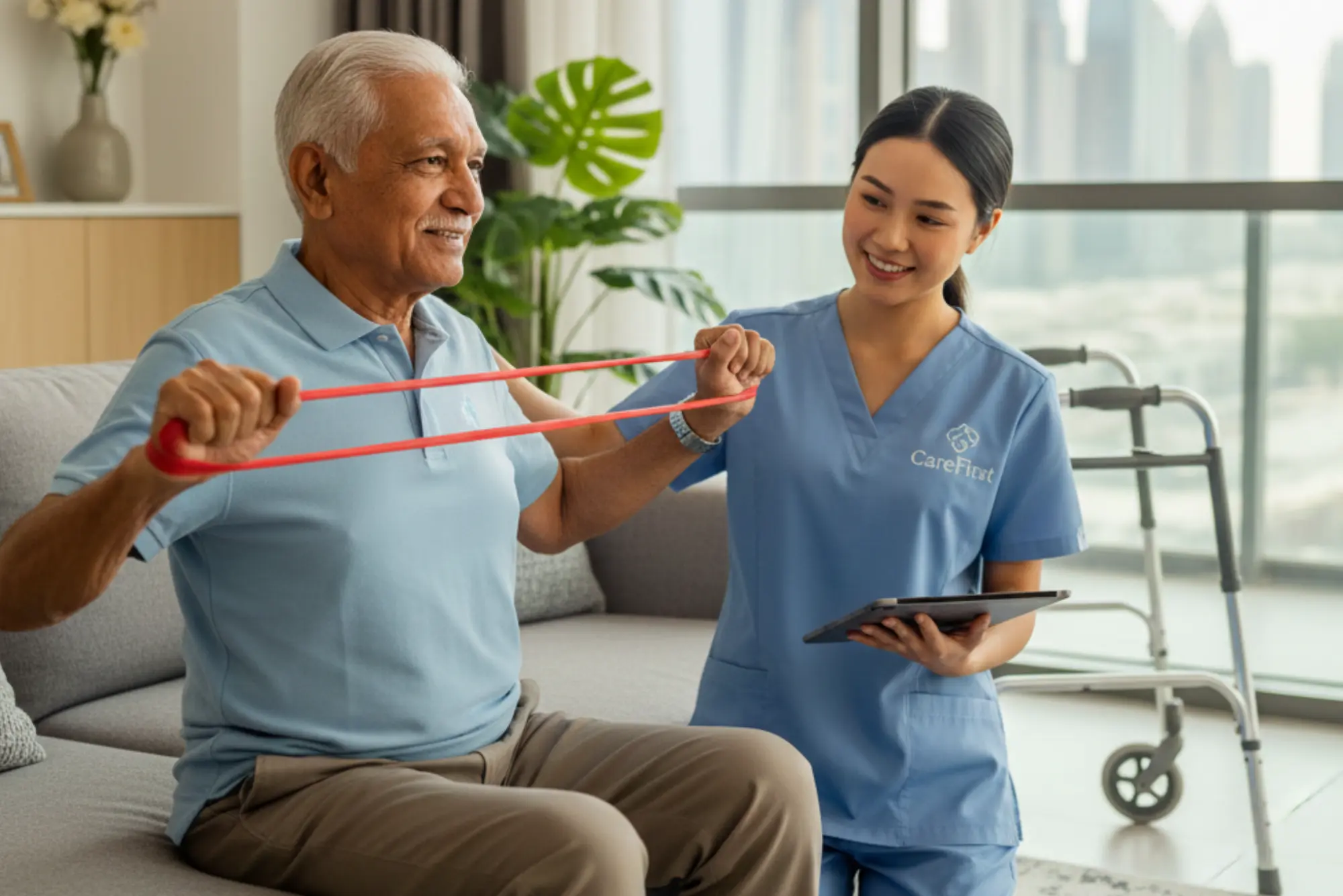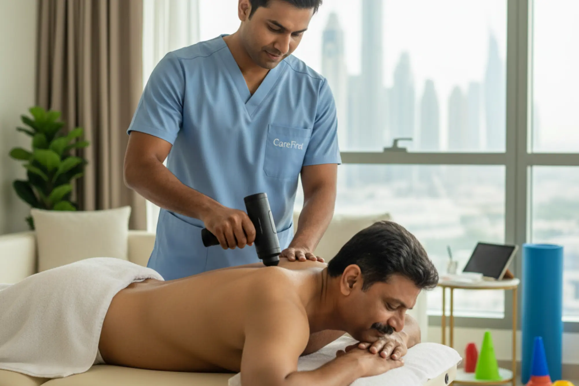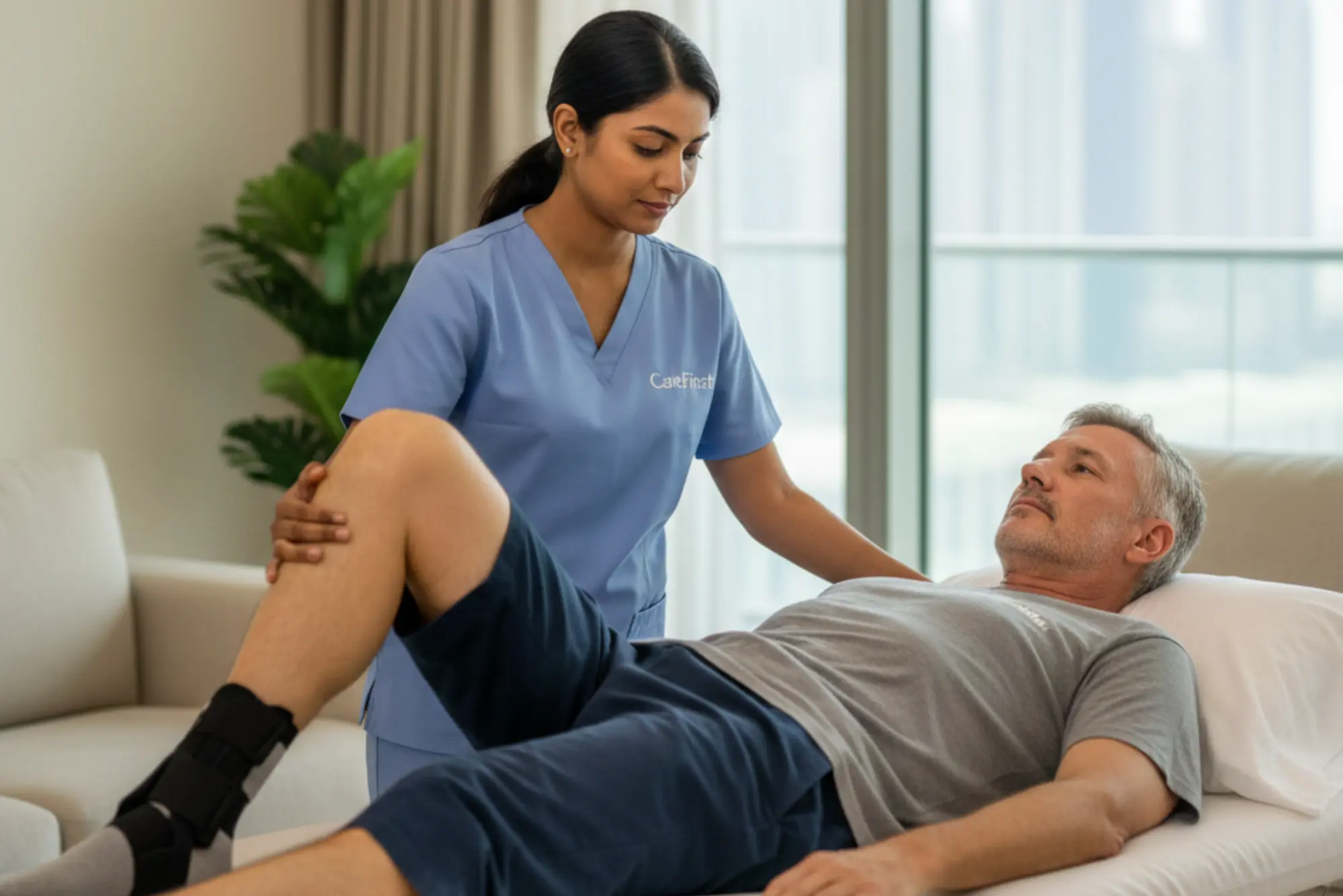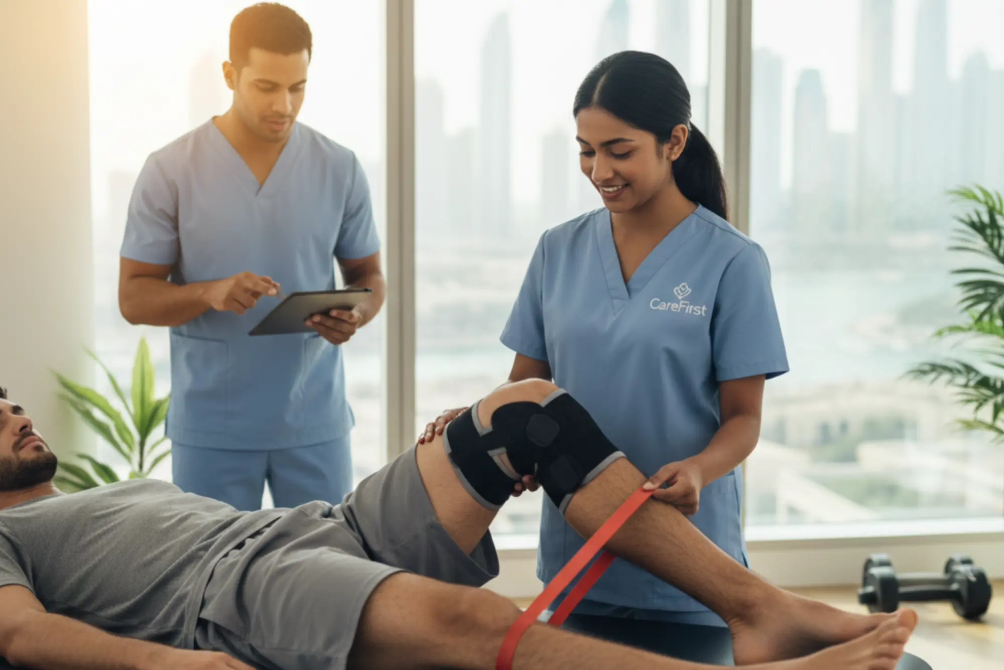 CareFirst offers professional physiotherapy at home in Dubai. Our DHA-licensed team provides expert clinical care and personalized recovery plans at your doorstep for maximum comfort.